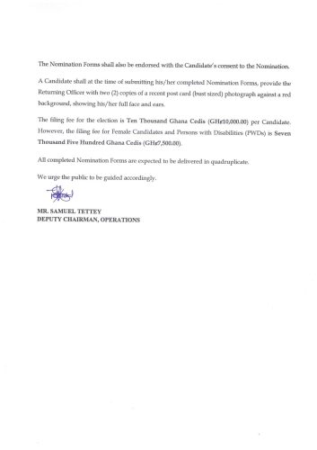 Candidates must have their forms endorsed by a proposer and seconder, who are both registered voters in the constituency, along with the backing of eighteen additional registered voters from Ayawaso East.