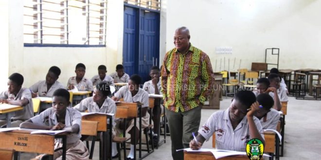 Samuel Pyne, the mayor of Kumasi, visited a few examination centers  in the city to motivate candidates for today’s Basic Education Certificate Examination (BECE) to perform well on the papers they will be writing over the following five days.