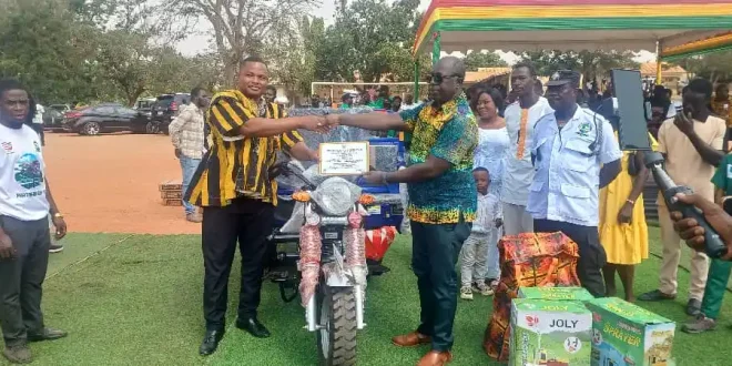 Mr. Bright Atawura, a farmer from Agric Nzema, was crowned as the Municipal Best Farmer, taking home a tricycle, cutlasses, weedicides, knapsack sprayers, Wellington boots, and a citation.