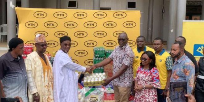MTN donated a sheep, bags of rice, bags of sugar, cooking oils, bottled water, non-alcoholic drink and MoMo worth Ghc 10,000.