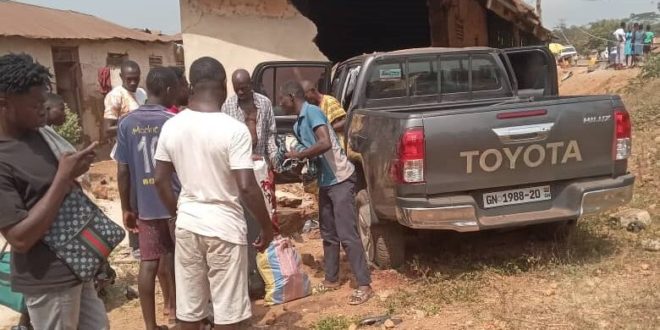 A Toyota Hilux collided with a building at Fawoman in the Atwima Mponua District of the Ashanti Region, resulting in the confirmation of one death and the hospitalization of three more.
