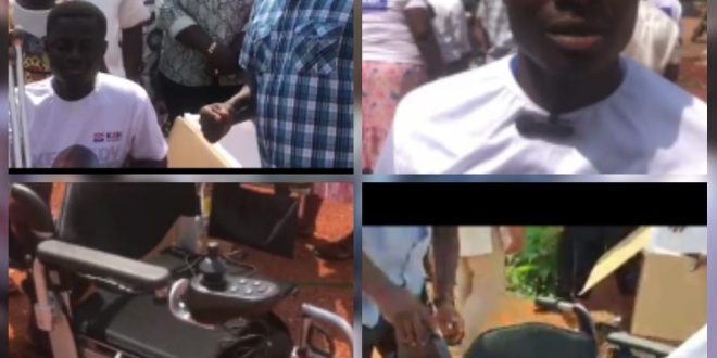 The beneficiary, Kofi Owusu, a resident of Atwima Aburaso, received the wheelchair following Hon. Agyapong’s campaign visit to NPP delegates in the constituency, during which he personally identified the difficult living condition of the physically challenged young man and acted swiftly to offer support.